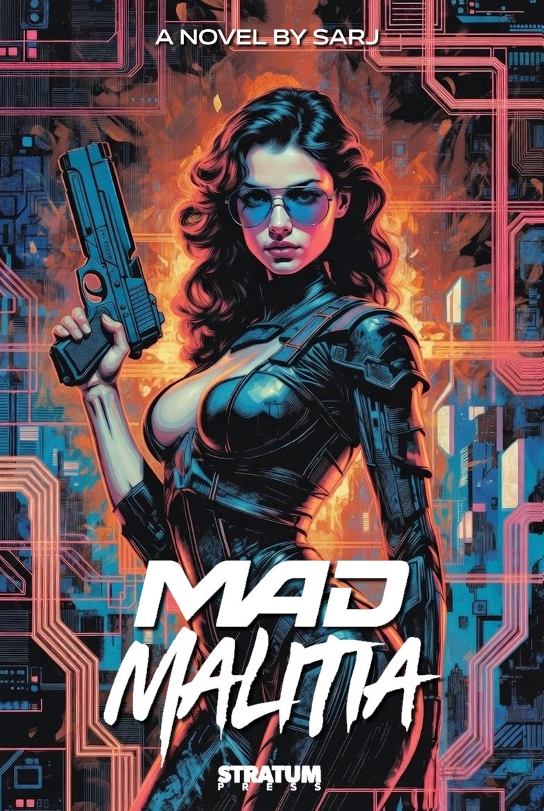 Mad Malitia is a wild and sexy cyberpunk novel set in the year 2147 when AI and automation has provided humanity-scale levels of abundance where human labor is a thing of the past. A criminal activist syndicate called the Disciples of Nyx is targeting masses of humans who’ve opted to go into self-induced sleep to indulge in hyper-immersive virtual reality simulations rather than live in relative boredom in a post-scarcity world. The Disciples plot is growing increasingly dangerous and fears abound that lives will be lost if their extremism isn’t curtailed.