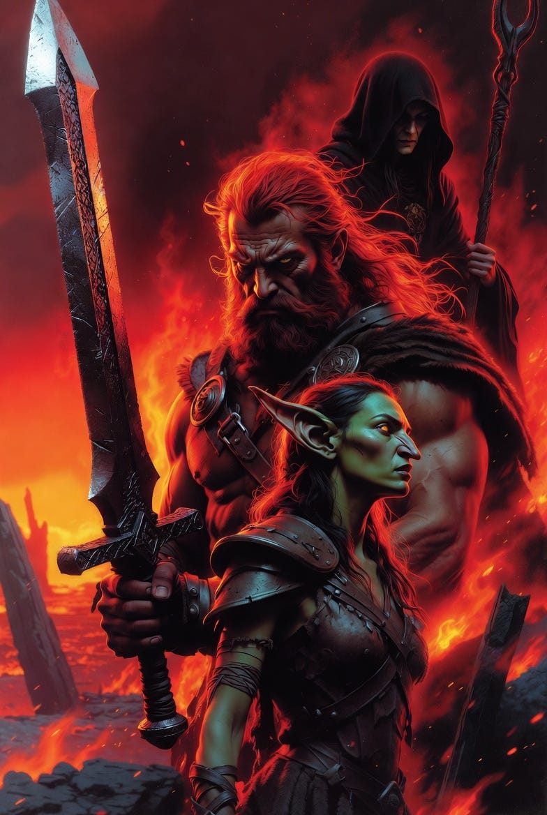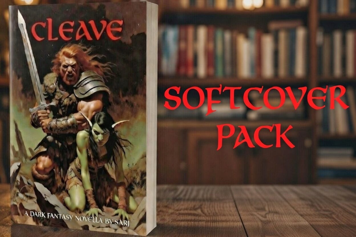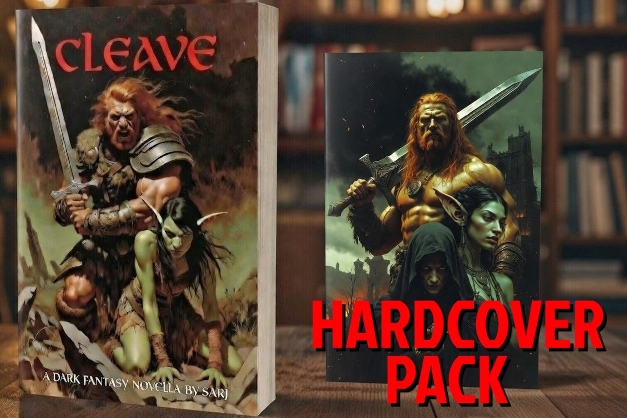 CLEAVE is a 150-page novella about a crazed barbarian on the hunt for a dragon egg that he seeks to destroy before a cult called the Sun-Slayers hatches it to birth a monster that will "sanctify the world". Accompanied by Gishna, a goblin woman and recently-freed slave, Cleave goes up against goblins, harpies, ogres and an army of zealots to achieve his goal.