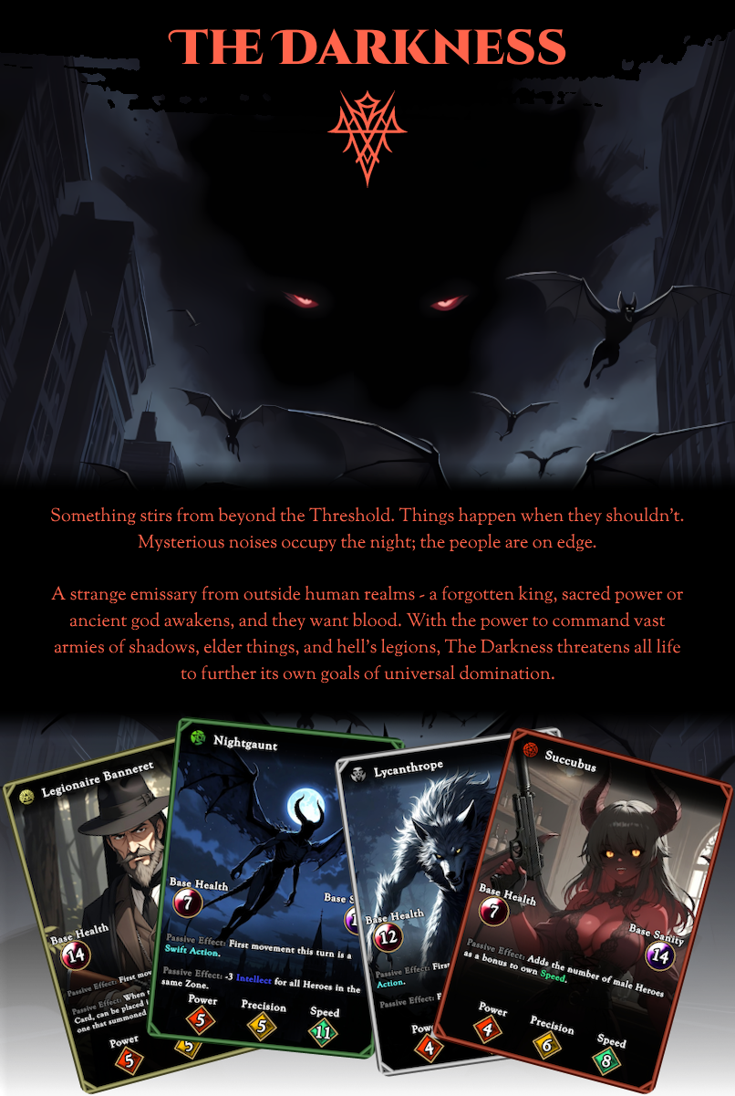 HoN is a scary and fun tabletop card game—with 2-4 players—where members of House Nocturne face off against the Forces of Darkness.