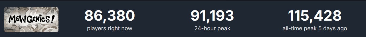 Despite the fear within the freelancer developer sphere that powers the Moloch engine of AAA corporate gaming, many indies are happily providing friction-free entertainment for the masses. The Mewgenics’ dev team is around twenty people, including freelancers, and it’s been a massive hit. Check out the SteamDB charts as of 2/20.